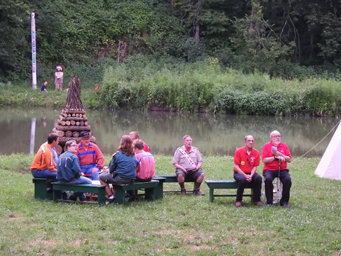 The 2019 summer camping season has been one of much success and historic moments. Each week this year has had a strong number of Scouts and Scouters in camp, the first girl units attended (and have been LOVING it), and the final family night of the season was an important moment to take pause. During the July 17, 2019 family night, Canyon Camp had the distinct privilege of sharing its appreciation to the family of Don Beck in his memory, Ken and Angie Friedrichs for their strong philanthropic dedication, and Dick Reynolds for his many years of service and mentorship. Each of these individuals have supported Canyon Camp in their own unique ways and have shaped countless individuals for many years at camp. Their legacies will continue to impact thousands of Scouts who come to camp for years to come. Co-Camp Directors Dick Reynolds and Lee Binkley began the traditional dance ceremony by first welcoming the children of Don Beck to the Dance Ring. Donald O. Beck was instrumental in Scouting and his community. As a passionate Scouter, he played a formative role in both Troops 33 (Elizabeth) and 26 (Warren). Don lived at Camp as the camp ranger with his wife and three children for a number of years. Don passed away in July of 2018. He was a servant to all. He was a friend to all. He supported Canyon Camp until the very end. Memorial funds from the Beck family allowed integral remodeling to the camp kitchen. Janine, Paul, and Chris, the three Beck children who lived at camp during his years as ranger, were present to accept a token of appreciation to the entire Beck family in memory of Don. To see the full presentation to the Beck Family, click here.